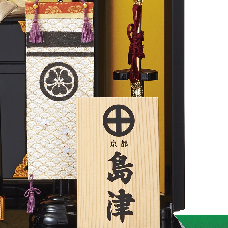 兜を収納する「兜櫃」の前面と幟旗には、貴家のご家紋をお入れいたします。